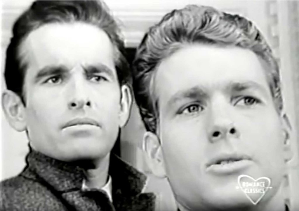Le canon recouvert de neige dans le square de Peyton Place. L’enseigne du Colonial Post Inn. À l’auberge, Rodney regarde sa montre et attend.