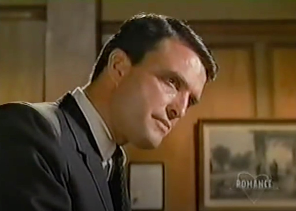 Jack Chandler (dont c’est ici la première apparition dans le feuilleton) conduit sa Ford rouge 1957 et se gare directement derrière la limousine de Peyton. Il grimpe les 6 marches de l’escalier du Town Hall deux par deux et pénètre à l’intérieur du bâtiment. Il passe devant la salle d’audience où siège l’audience préliminaire de Lee Webber et se rend au poste de police.
