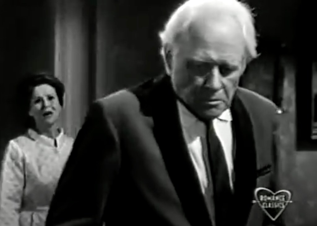 Hannah apparaît en haut des escaliers et emmène le vieil homme dans sa chambre.
